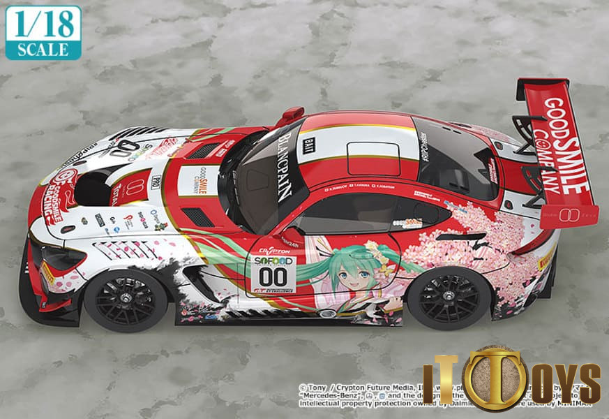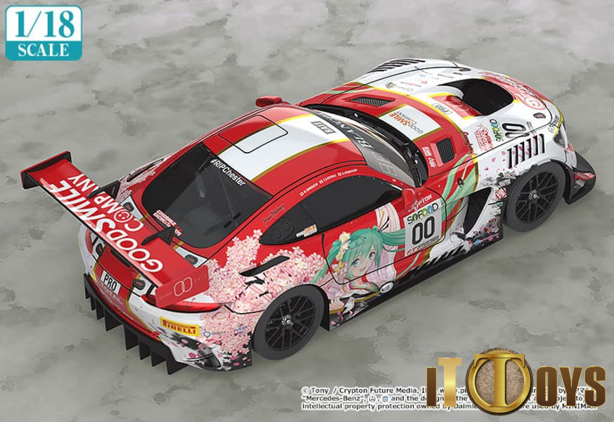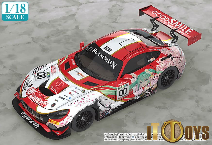 A 1/18 miniature car of the Good Smile Hatsune Miku AMG that took part in the 24 Hours Spa race that took place in Belgium in July 2017.